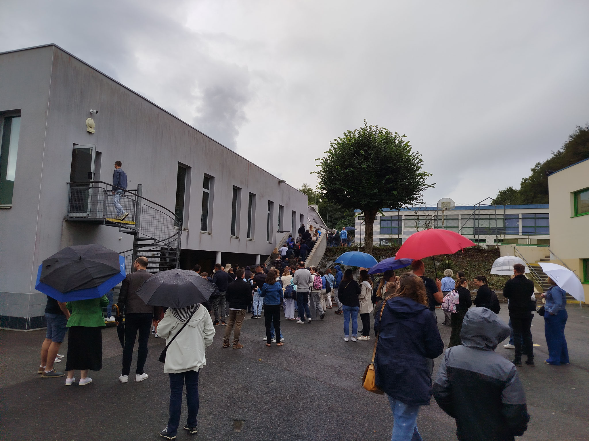 Clap de fin sur la rentrée 2024 des 6ème avec des parents studieux en salle Tabarly après que leurs enfants aient passé leur première demi journée au "Fort St Jo" - Septembre 2024