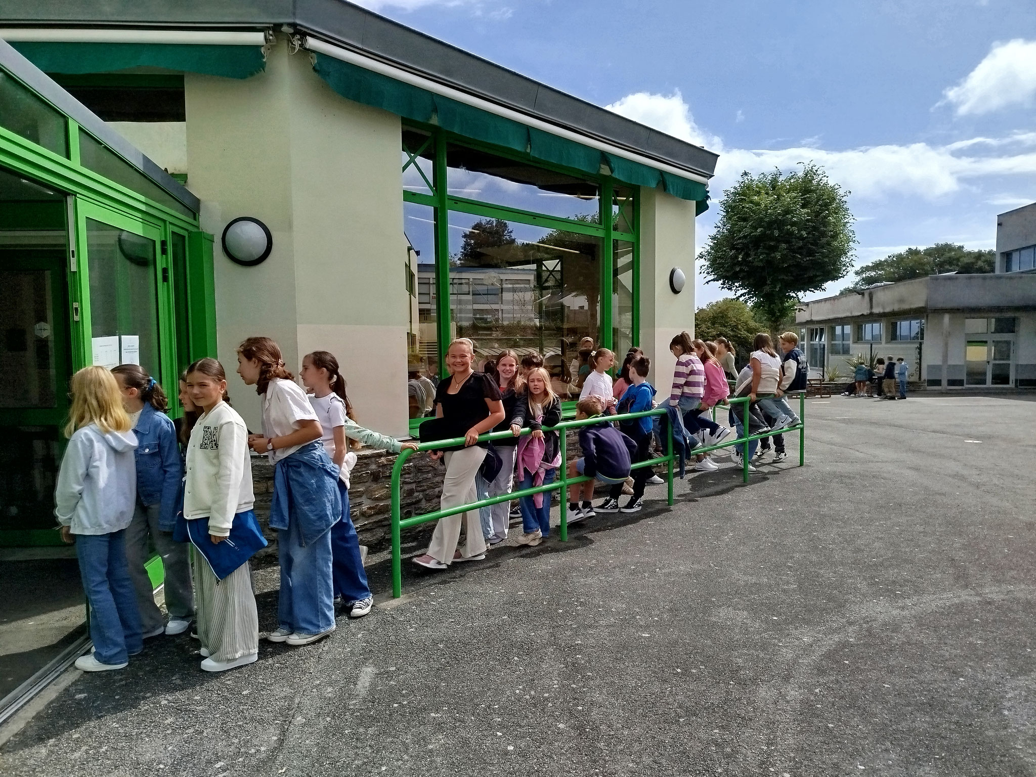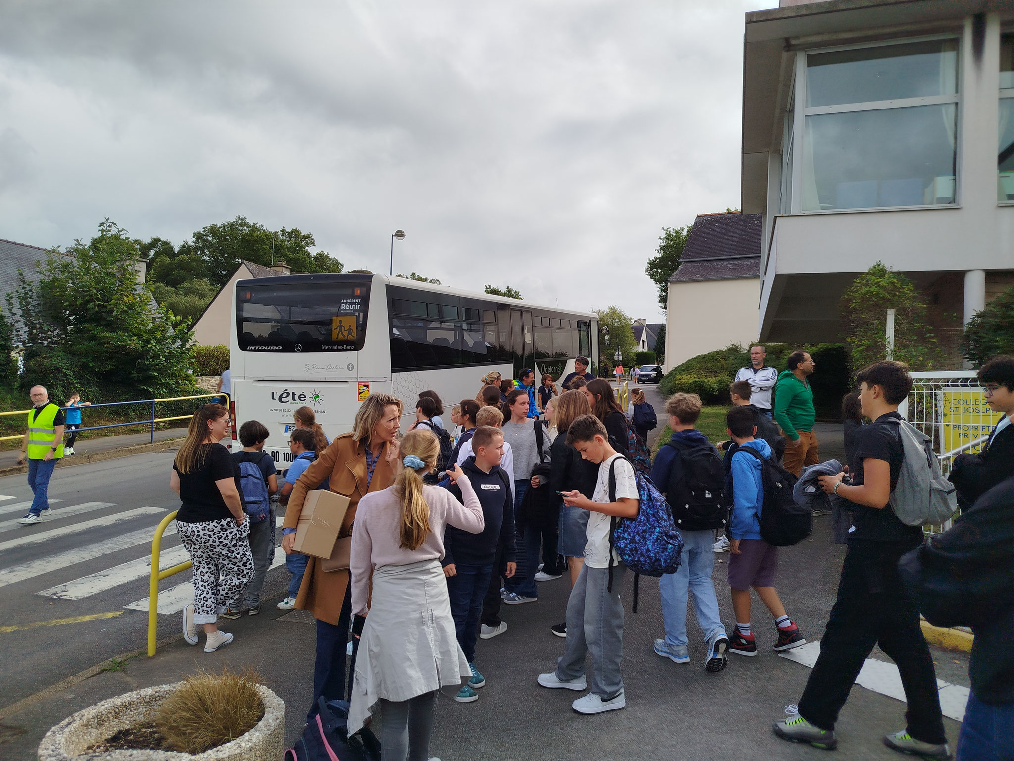 Le Conseil Régional de Bretagne organise une opération de sensibilisation auprès des élèves de 6ème. L'action se déroule en deux temps : une présentation théorique en salle (dangers aux points d'arrêt, angles morts, comportement dans le véhicule...) et un exercice d'évacuation à bord du car de 15 minutes.