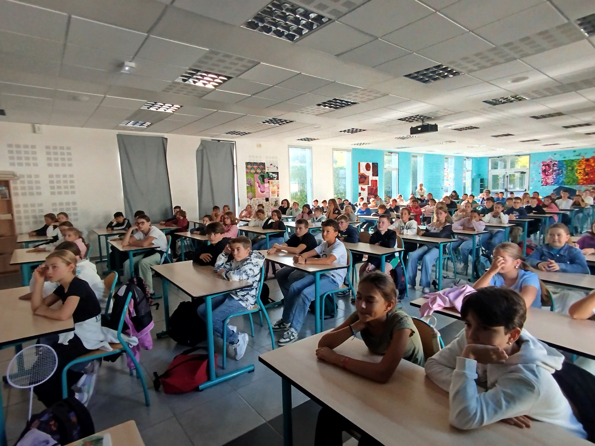 Comme tous les ans, le collège organise un moment sportif convivial autour d’une course solidaire. Cette année, c'est l'association "Les blouses roses" qui intervient auprès des enfants hospitalisés et des personnes âgées en EHPAD, qui sera mise à l'honneur. Les bénévoles sont venus présenter leur association à tous les élèves qui ont été très attentifs au discours tenu. Les dons récoltés par tous les élèves du collège et des écoles du canton seront remis aux bénévoles, après la course.